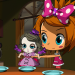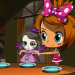 Sima sitzt mit ihren Puppen und dem Teddy am Tisch.