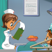 Eine nette Ärztin sitzt am Krankenhausbett von Sima.